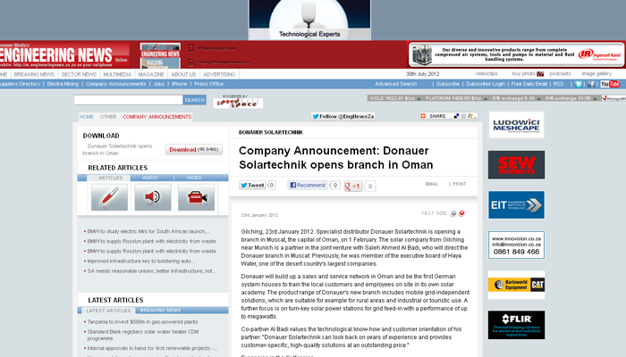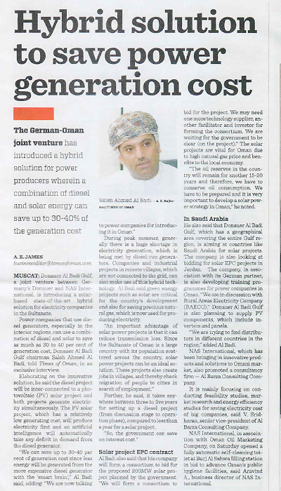 لقاء صحفي مع رئيس مجلس الادارة دوناور البادي الخليج ش .م .م - جريدة تايمز اوف عمان 2012 |
