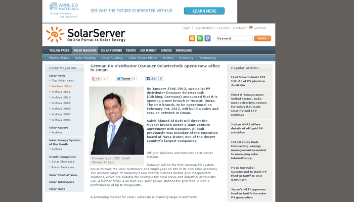 مقابلة مع رئيس مجلس الادارة صالح بن أحمد البادي في تلفزيون سلطنة عمان برنامج هنا عمان حول تطوير الطاقة الشمسية كبديل للامدادات الطاقة في السلطنة |